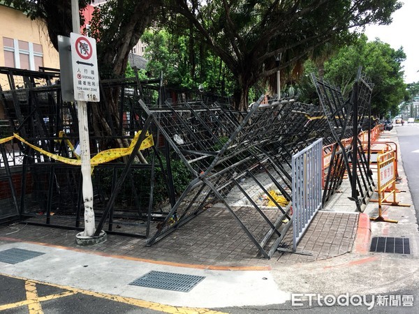 臺“立法院”正門堆滿層層拒馬。(圖片來源:臺灣“東森新聞云”)