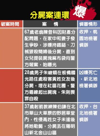 臺灣1個月內發生3起分尸案