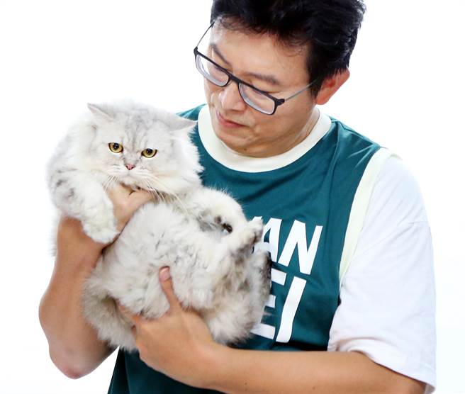 姚文智25日與黨籍市議員參選人拍攝定裝照,特地請出愛貓客串模特兒。(圖片來源:臺灣《中時電子報》)