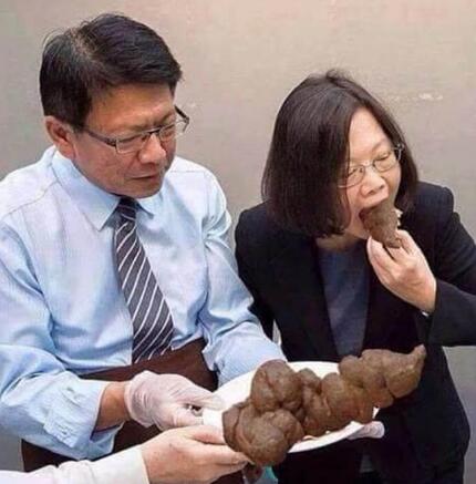 有網(wǎng)友發(fā)圖回應(yīng),指蔡英文“正在吃”。(圖片來源:李富誠Facebook)