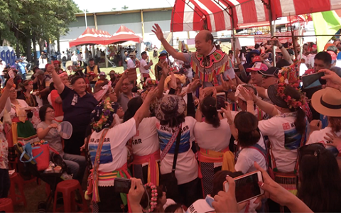 報(bào)道說韓國瑜今天中午12點(diǎn)出席祭盛,穿著傳統(tǒng)阿美人服飾,相當(dāng)入境隨俗,雖然未受邀上臺(tái)致詞,但他繞整場(chǎng)花了逾40分鐘,逐一向少數(shù)民族朋友致意,更引起眾人“暴動(dòng)式”歡迎,搶了臺(tái)前表演團(tuán)體的豐采。