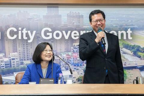 蔡英文與桃園市長鄭文燦。(臺媒資料圖)