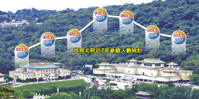 臺北故宮北院近7年參觀人數統計。(圖片取自臺媒)
