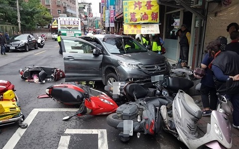 報道說,一名年約50歲的駕駛員開車行經該路段時,疑似因身體不適,車輛突然暴沖到對向車道,擦撞兩輛行駛中的機車、一輛小客車跟一輛公車,路旁停放的七八輛機車也被撞擊。駕駛意識清楚被送往馬偕醫院急救,另名機車騎士則因肢體擦傷,被送往衛服部臺北醫院,詳細情形警方已介入調查。(中國臺灣網 娟子)