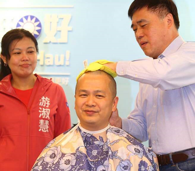 國民黨臺北市議員羅智強(中)又有驚人之舉,繼選前剃光頭照亮同黨同志游淑慧(左),他宣布四階段參選臺灣地區(qū)領(lǐng)導(dǎo)人,以行動改造國民黨。(圖片來源:臺灣《聯(lián)合報》)