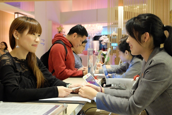 近一個多月高雄飯店業迎來久違的景氣春燕,高雄和逸飯店昨日柜臺前,出現大量辦理入住手續的民眾。(圖片來源:臺灣《聯合報》)