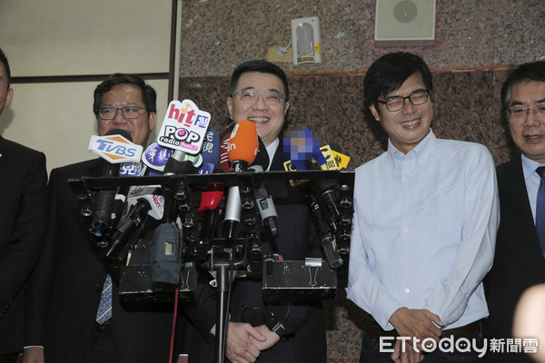 鄭文燦(右二)等人推舉卓榮泰(中)選民進黨主席,引吳乃仁怒退黨。(圖片來源:臺灣“東森新聞云”)