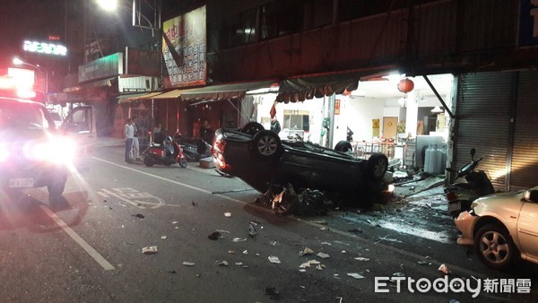 警方表示,莊某駕駛的轎車從博愛陸橋下來后,由西向東進入興達路,但該路段限速50公里,少年卻超速開到90公里,恰巧62歲翁姓摩托車駕駛員從右側巷口正要騎出,莊某緊急踩剎車導致車子打滑沖向對向車道,撞倒下班正要回家的29歲謝姓摩托車駕駛員,再撞進一旁的店家,車子同時間側翻。事故現場2死2傷,分別是謝某和轎車后座的鐘姓女子。