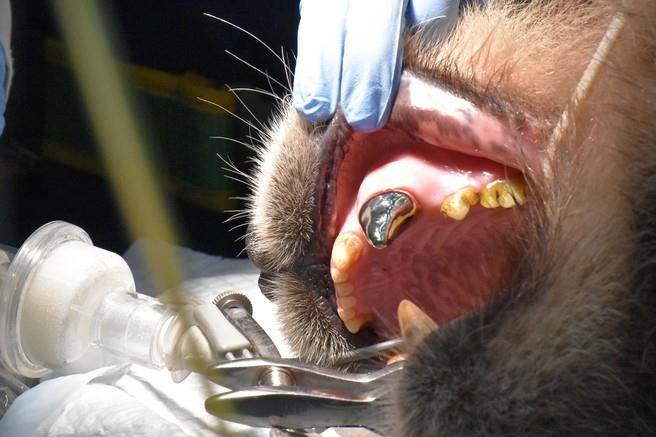 據報道,保育員發現“團團”左上犬齒斷裂后,隨即聯系動物園獸醫師及“野生動物健康照護與醫療小組”,經醫療團隊判斷,“團團”左上犬齒牙髓腔已露出,有感染之風險,必須在牙髓組織受損前保護并活化神經。為了讓“團團”可以保全牙齒、維持進食竹桿破竹功能,并避免該犬齒再次斷裂,因此12日先進行活髓治療,將局部發炎感染之牙髓組織移除,并裝填三氧礦化聚合物(MTA)保護并活化神經。當天并制作齒模,運用鈦金屬材質制作牙套。23日醫療團隊再度合作,為“團團”裝上鈦金屬牙套。