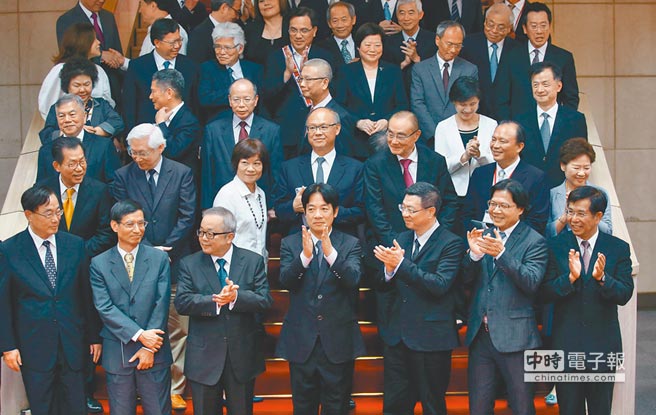 面對蔡英文元旦假期全力慰留,賴清德仍去意堅定。圖為2017年交接典禮后,賴清德率時任“閣員”合影。(圖片來源:臺灣“中時電子報”)