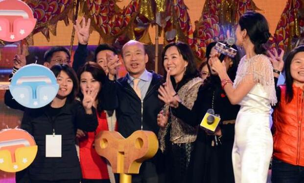高雄市長韓國瑜、李佳芬伉儷一起出席2019高雄跨年派對,與民眾同樂倒數計時迎接新年。(圖片來源:臺灣《中時電子報》)
