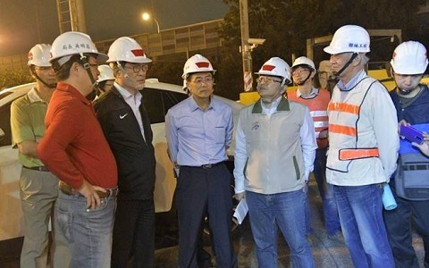 李四川(左二)帶領高雄市工務團隊施工畫面。(圖片來自臺媒)