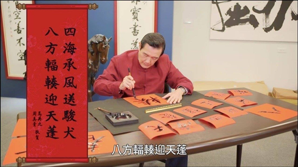 馬英九手寫春聯(lián)受歡迎。(圖片來(lái)源:臺(tái)灣“東森新聞云”)