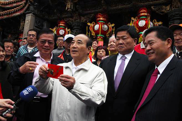 臺灣前“立法院長”王金平到大甲鎮瀾宮發送“時來運轉”小紅包。(圖片來源:中時電子報)