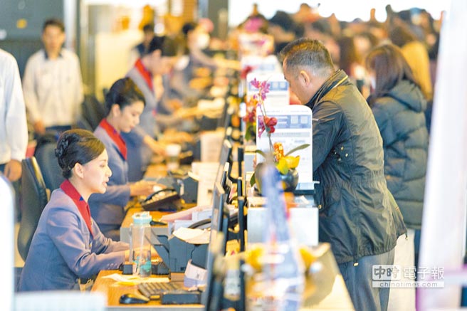 華航勞資協商破裂,機師工會罷工進入第3天,地勤員工在第一線向受影響旅客道歉賠不是。(圖片來源:臺灣“中時電子報”)