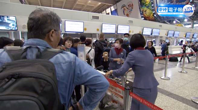 臺灣華航爆發機師罷工事件,旅客無辜權益受損。華航地勤人員在機場作善后處理。(圖片來源:臺灣“中時電子報”)