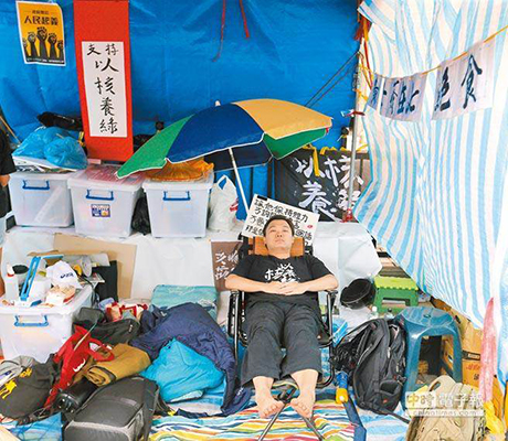 圖為去年9月黃士修絕食靜坐抗議“中選會(huì)”拒收聯(lián)署書(shū)補(bǔ)件。(圖片來(lái)源:臺(tái)灣“中時(shí)電子報(bào)”)