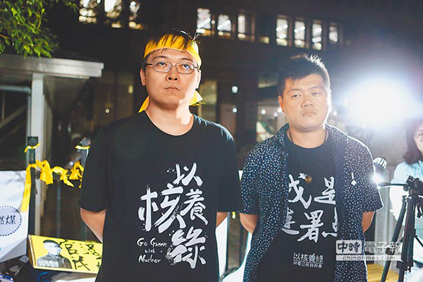 “以核養綠公投”提案領銜人黃士修(左)痛批林義雄“把民主進步黨做賤了”。(圖片來源:臺灣“中時電子報”)