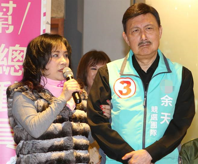 26日,民進黨新北“立委”候選人余天(右)在妻子李亞萍(左)陪同下出席活動。(圖片來源:臺灣“中時電子報”)