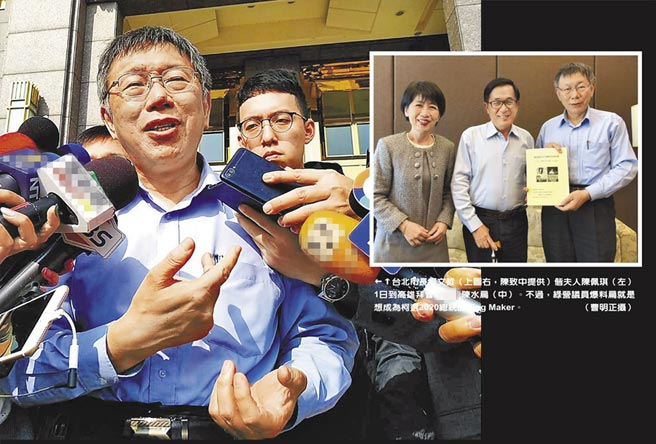 柯文哲(小圖右)偕夫人陳佩琪(左)1日到高雄拜會陳水扁(中)。 (圖片來源:臺灣“中時電子報”)
