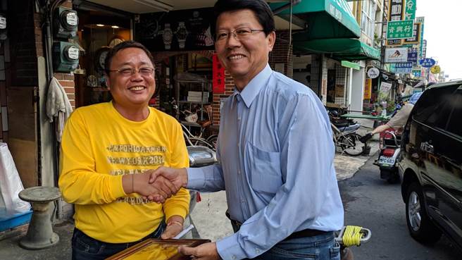 投入“立委”補選的國民黨臺南市議員謝龍介20日到選區開講與拜票,支持群眾爭相合照、簽名。(圖片來源:臺灣“中時電子報”)