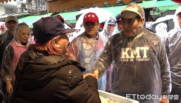 馬英九今晨陪同三重區“立委”補選候選人鄭世維前往龍門市場掃街拜票。(圖片來源:臺灣“東森新聞云”)
