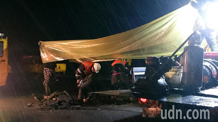 桃園機場8日才停電9日又逢連日雨,機場南跑道中段鋪面疑因連日大雨影響,出現長約45厘米、寬30厘米,深度約3厘米的凹洞。(圖片取自臺媒)