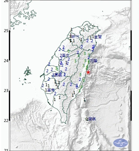 臺灣花蓮縣13日中午12點32分左右發生5.2級地震。(圖片取自臺媒)