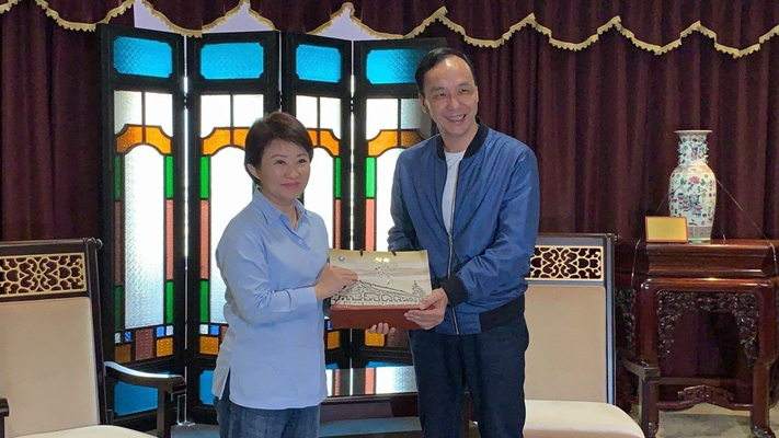 前新北市長(zhǎng)朱立倫今天(13日)下午拜訪臺(tái)中市長(zhǎng)盧秀燕(圖片來源:臺(tái)灣“聯(lián)合新聞網(wǎng)”)