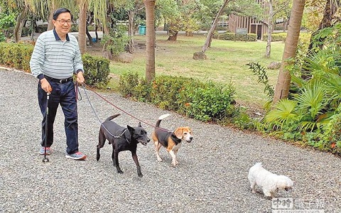 前臺灣地區領導人陳水扁保外就醫,在公園遛狗。(圖片來自臺媒)