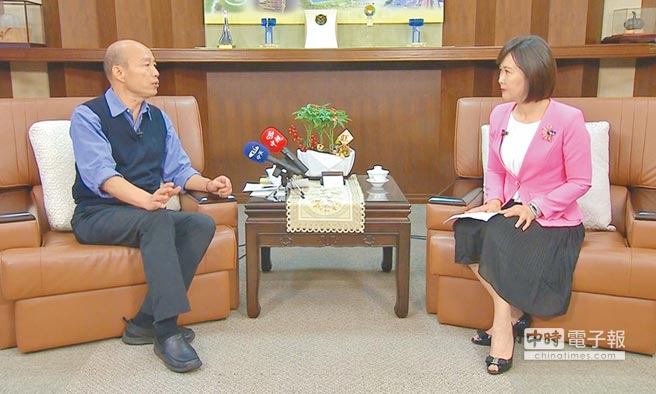 韓國瑜(左)昨接受中天電視專訪時表示,綠營若是賴清德出線,2020就會變成一場意識形態大戰。(圖片來源:臺灣“中時電子報”)