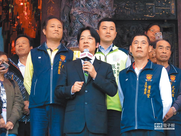 賴清德抵達(dá)昭靈宮后先入內(nèi)參拜,賴清德的舅舅、基隆市慶安宮主委童永、新北市議員張錦豪等到場。