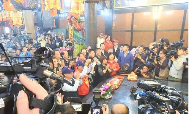 17日,郭臺銘在宣布參選之前,前往媽祖廟拜拜。(圖片來源:香港中評社)