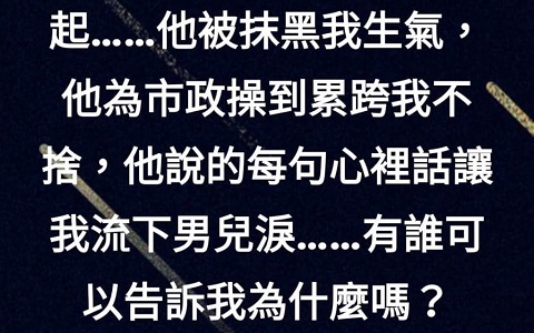 有網(wǎng)友在臉書“韓國瑜鐵粉后援會”發(fā)文:“我是退伍的職業(yè)軍人也是高雄市民,在軍職生涯中除了為父母、老婆、孩子掉淚操心難過外,唯有經(jīng)國先生讓我哀思淚流。但曾幾何時,韓國瑜市長居然讓我心情起伏迭起……他被抹黑我生氣,他為市政操到累垮我不舍,他說的每句心里話讓我流下男兒淚……有誰可以告訴我為什么嗎?”