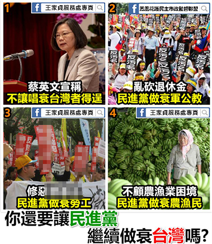 臉譜網粉絲專頁“鳳凰花護民主市政監督聯盟”發出民進黨執政后惹怒民怨的照片,炮轟蔡英文當局。(圖片取自臺媒)