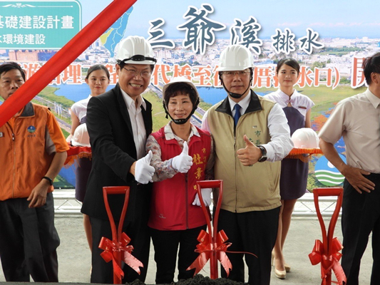 黃偉哲(右)今(24日)參加三爺宮溪整治工程動土,對賴清德的“讓步方案”提出看法。(圖片來源:臺灣《聯合報》)