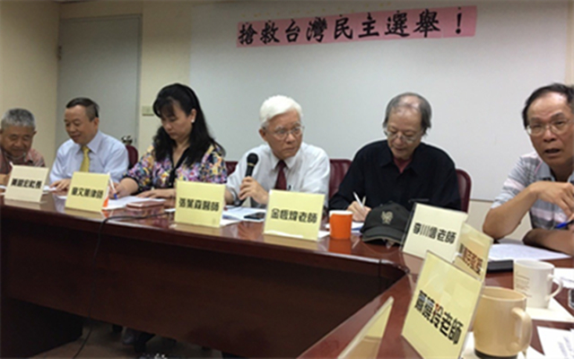 多個“本地社團”領袖組成的“民進黨初選觀察團”今(5日)早舉行“搶救臺灣民主選舉”記者會(圖片來源:臺灣《聯合報》)