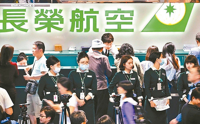 臺灣長榮航空空乘人員6月20日開始罷工,7月9日晚間24時正式結束。(圖片來源:臺灣《聯合報》)