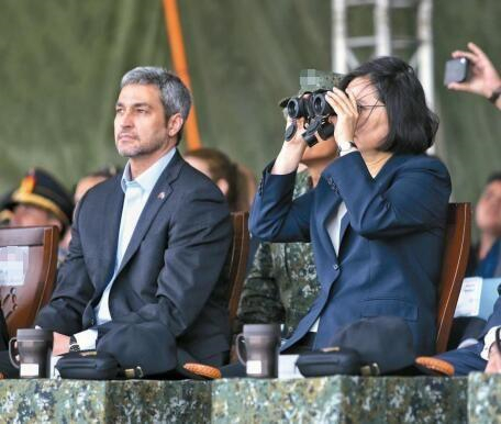 2018年,蔡英文與巴拉圭總統貝尼特斯(左)觀看臺軍演習。(圖片來源:臺灣《聯合報》)