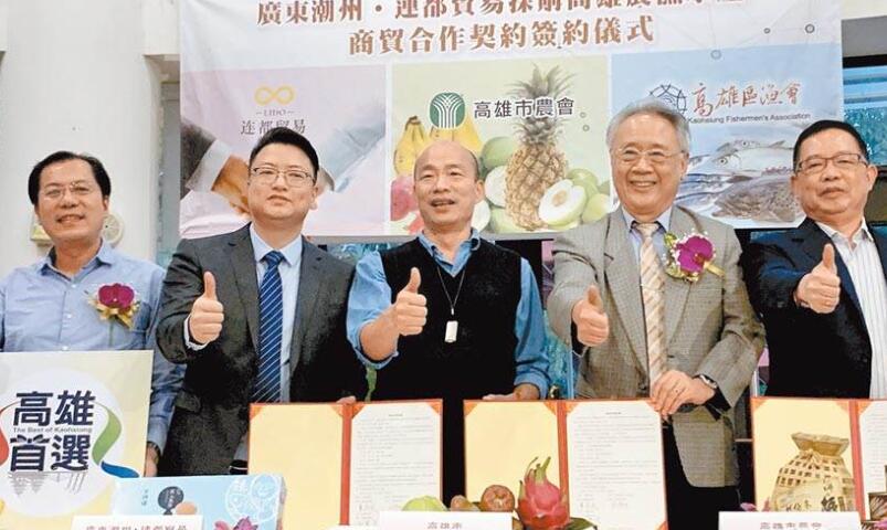 曾陪韓國瑜四處征戰(zhàn)搶訂單的高雄區(qū)漁會理事長謝龍隱(右1),與蔡英文會面時,祝“小英”連任成功,引發(fā)外界聯(lián)想。(圖片來源:臺灣“中時電子報”)