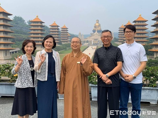 臺“立法院院長”蘇嘉全的太太洪恒珠(左二)拜訪佛光山和慧屏法師合影、競選總部成立。(圖片來源:臺灣“東森新聞云”)