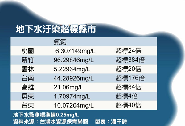 地下水污染超標縣市。(圖片取自臺媒)