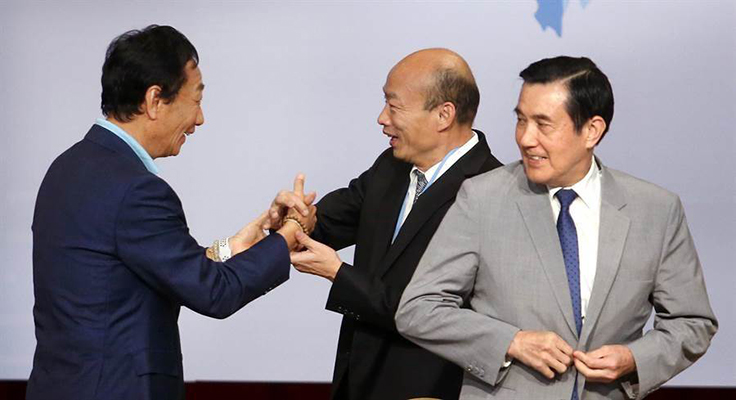 郭臺銘,韓國瑜,馬英九。(圖片來源:臺灣“中時電子報”)