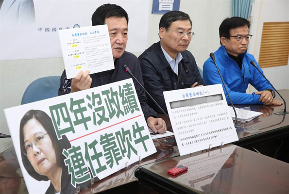 國(guó)民黨“立委”曾銘宗、費(fèi)鴻泰、賴士葆近日緊追臺(tái)商回臺(tái)投資“零蛋”議題,今(26日)又舉行記者會(huì)開(kāi)轟,痛批蔡英文,“若真不懂就不要喬太守亂點(diǎn)鴛鴦譜”,勿再混淆視聽(tīng),且需向臺(tái)灣民眾道歉。(圖片來(lái)源:臺(tái)灣“中時(shí)電子報(bào)”)