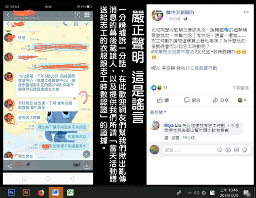 網(wǎng)絡(luò)流傳韓國瑜造勢有志愿者時數(shù),國民黨澄清絕無此事,痛批抹黑!(圖片來源:臺灣“中時電子報”)