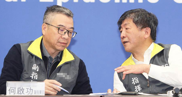 臺當局“衛(wèi)福部政務次長”何啟功(左)與“衛(wèi)福部長”、“疫情中心”指揮官陳時中(右)。(圖片來源:臺灣“中時電子報”)