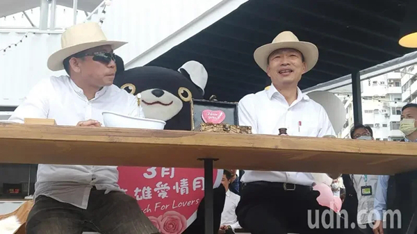 高雄市長韓國瑜(右)與觀光局長邱俊龍(左)上午出席“高雄愛情月─白色情人節”記者會。(圖片來源:臺灣“聯合新聞網”)