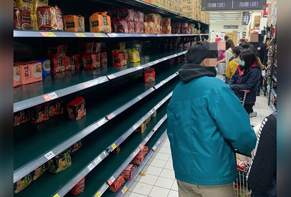 商場工作人員表示,人口眾多的新北新莊、蘆洲、板橋區(qū)以及臺北三民區(qū)等分店情況最為明顯,由于來不及補(bǔ)貨,造成架上空蕩蕩的景象。網(wǎng)購民生物資的數(shù)量,也從往常每天約四五千份訂單,暴增至一萬多。有民眾表示,不知道疫情接來會怎么發(fā)展,之后可能會減少出門購物、就餐的次數(shù),才想趕快一次買足。