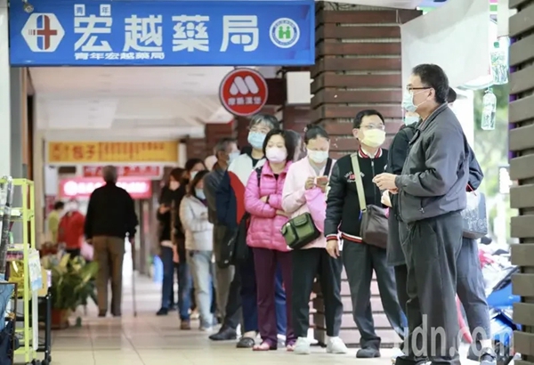 各地藥局涌現排隊人潮,不少人都深怕晚一步買不到。(圖片來源:臺灣《聯合報》)