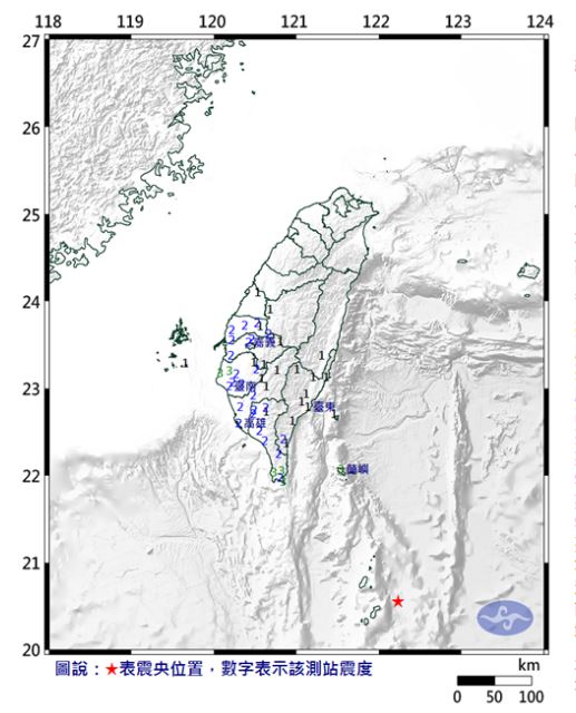 中國(guó)臺(tái)灣網(wǎng)4月11日訊 據(jù)臺(tái)灣“中央社”報(bào)道,根據(jù)臺(tái)氣象部門最新信息,11日0時(shí)44分臺(tái)灣南部海域發(fā)生6.4級(jí)地震,地震深度182.1公里,震中位于臺(tái)東縣政府南偏東方270.8公里(位于臺(tái)灣南部海域),最大震度臺(tái)東縣、屏東縣、臺(tái)南市3級(jí)。